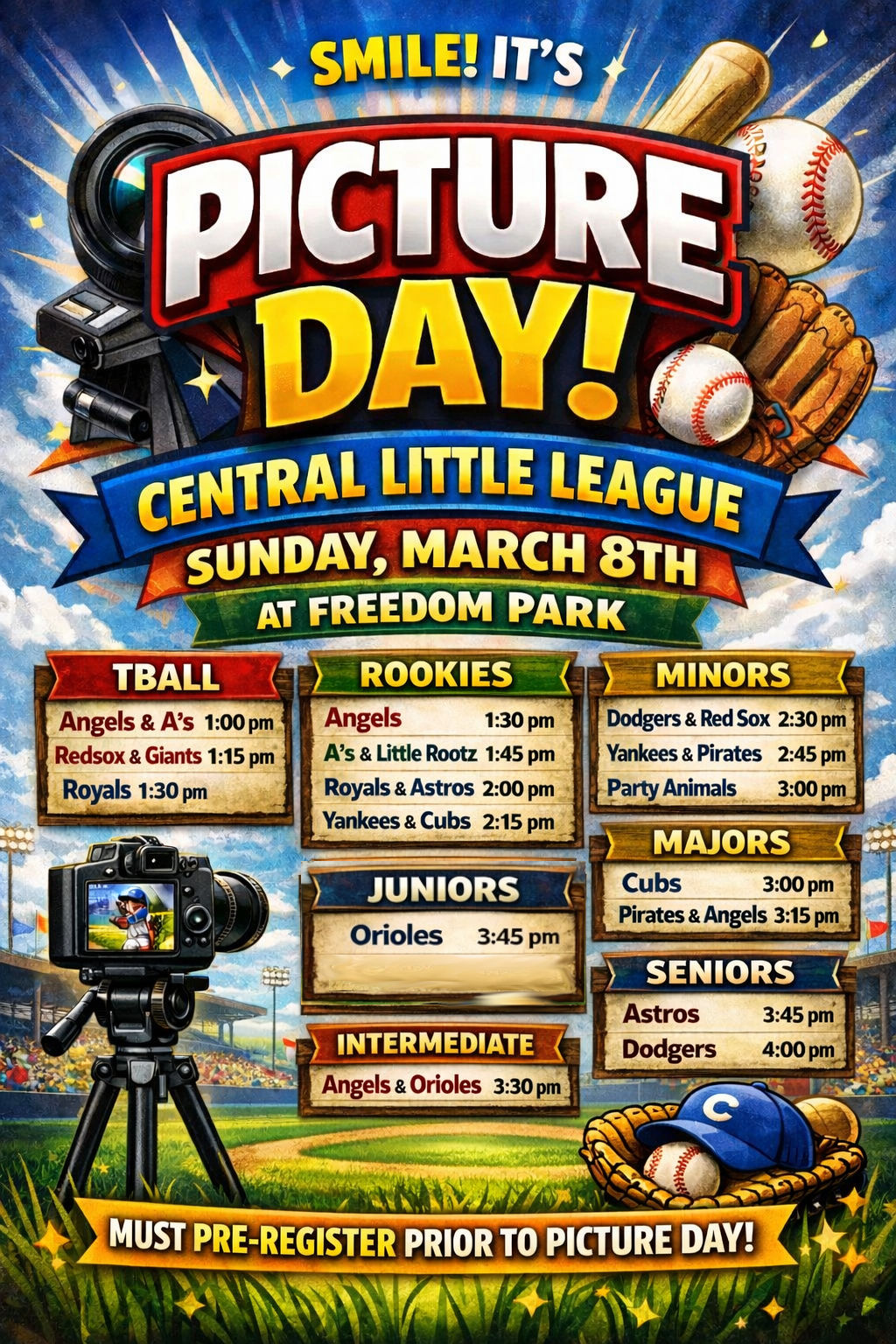 - We ask that each team arrive 15 minutes before their scheduled picture time.